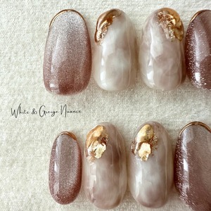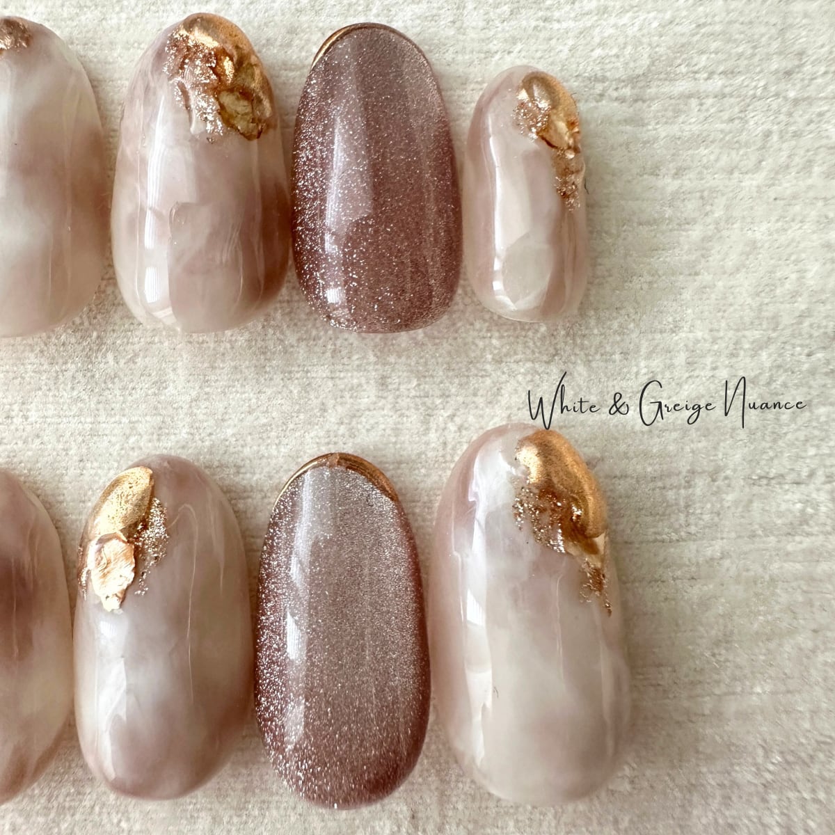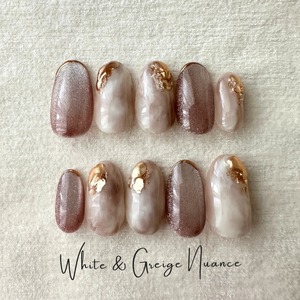 さりげない魅力を引き立てるホワイトグレージュのニュアンスネイルチップです。