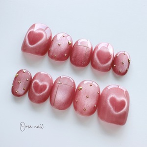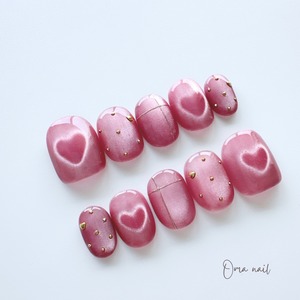 流行りの水光・シルキーマグネットジェルで作ったハートの形が指の傾きでひょっこり出てきます。