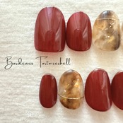 こっくり秋カラーのボルドーに奥行きのある幻想的なべっ甲柄のデザインズネイルチップです。