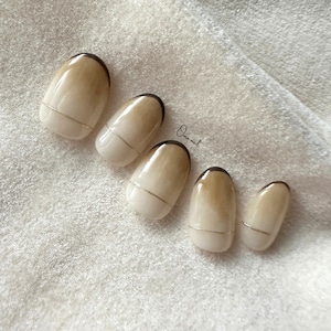 肌なじみの良いホワイトベージュにオーカー(濃ベージュ)カラーのニュアンスデザインです。