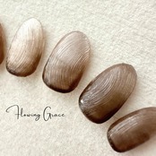 アッシュとブラウンのグラデーションマグネットネイルです。