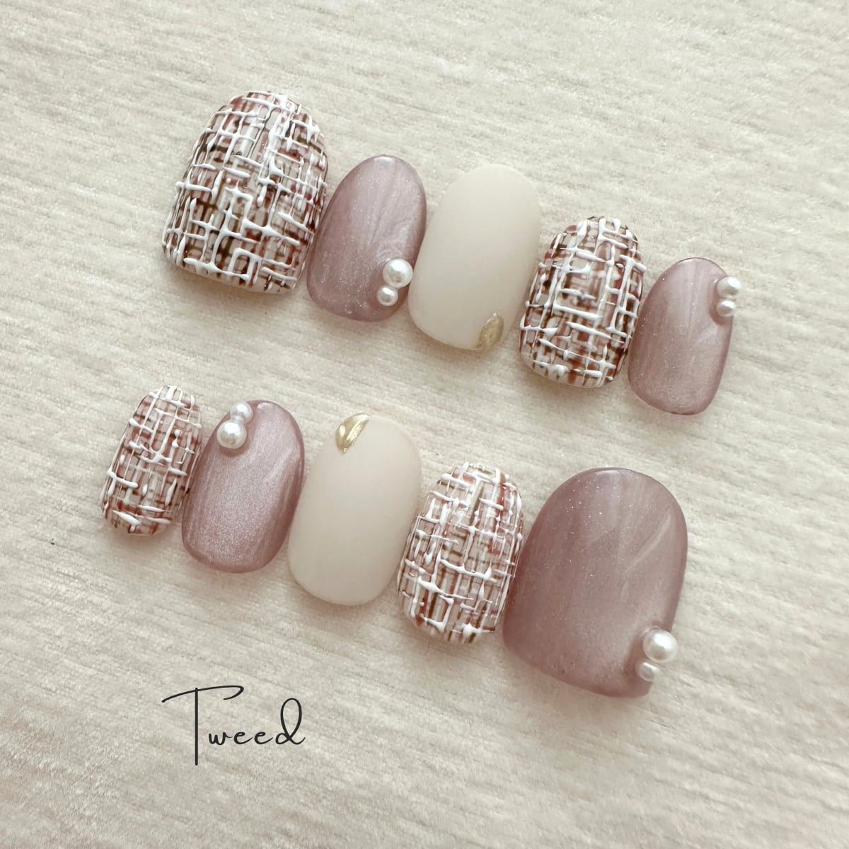 ふんわり優しいマグネットカラーとほっこりピンクのツイードデザインが可愛いデザインチップです。
