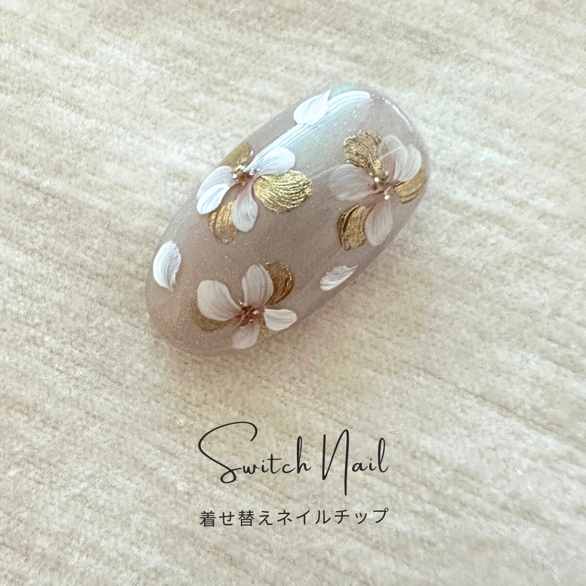グレージュの水光マグネットをベースにに手書きのお花を上品に描きました。