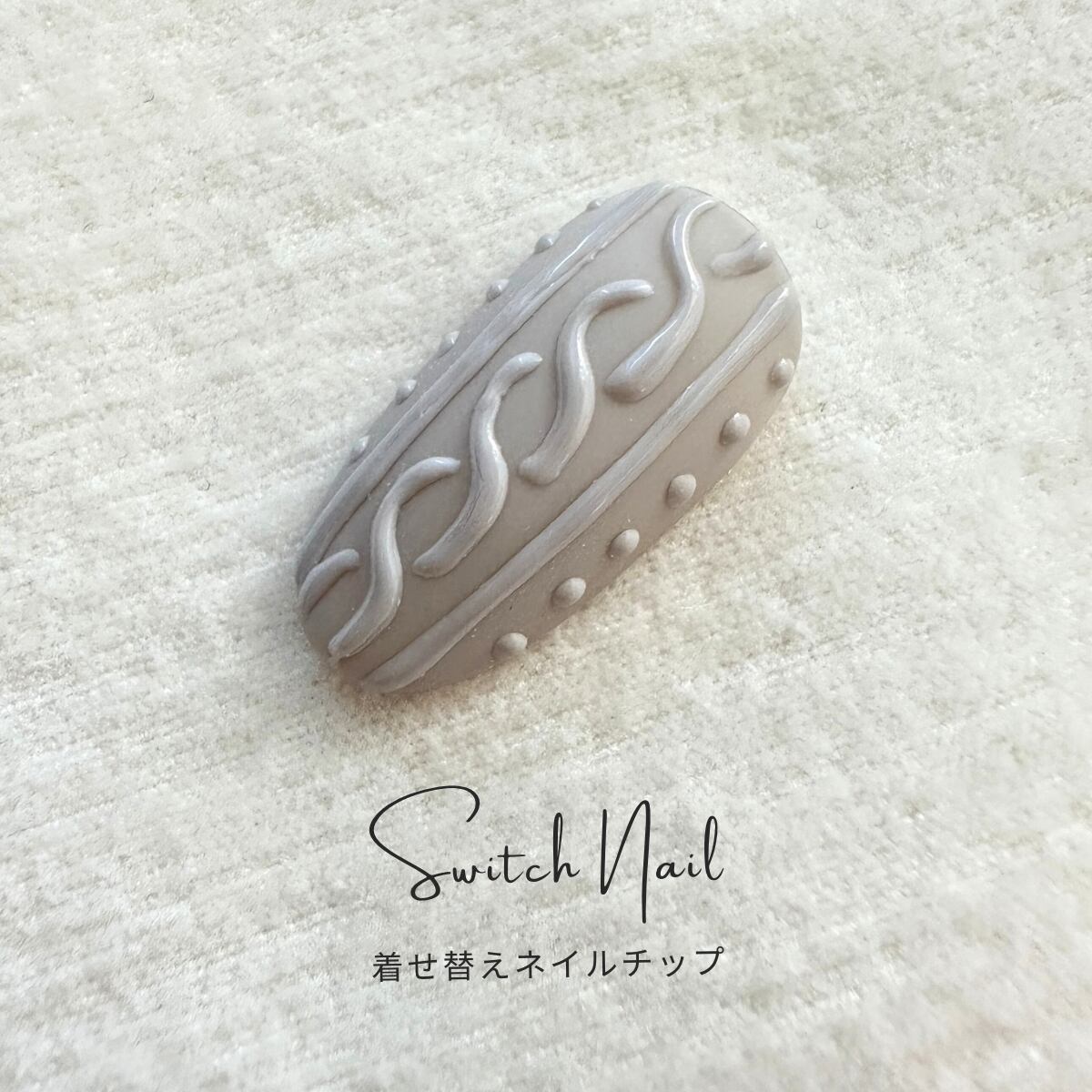 グレイカラーの立体的なニットネイルチップです。