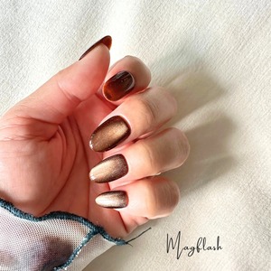 光を反射するフラッシュグリッターが合わさり美しい輝きを放つ不思議なジェルを使用したネイルチップです。