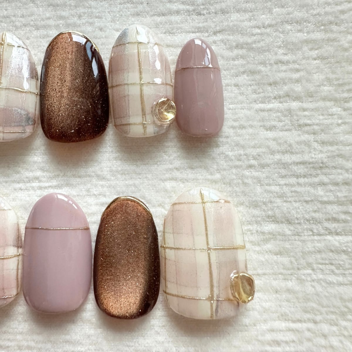 マグニティフラッシュとインクでふんわり作ったチェック柄が可愛いネイルデザインです