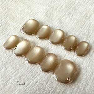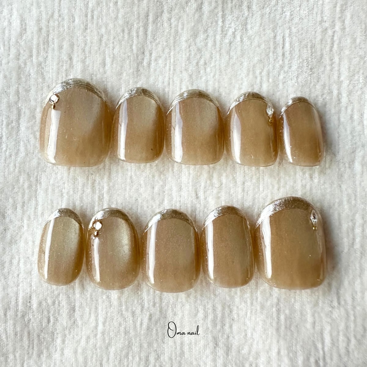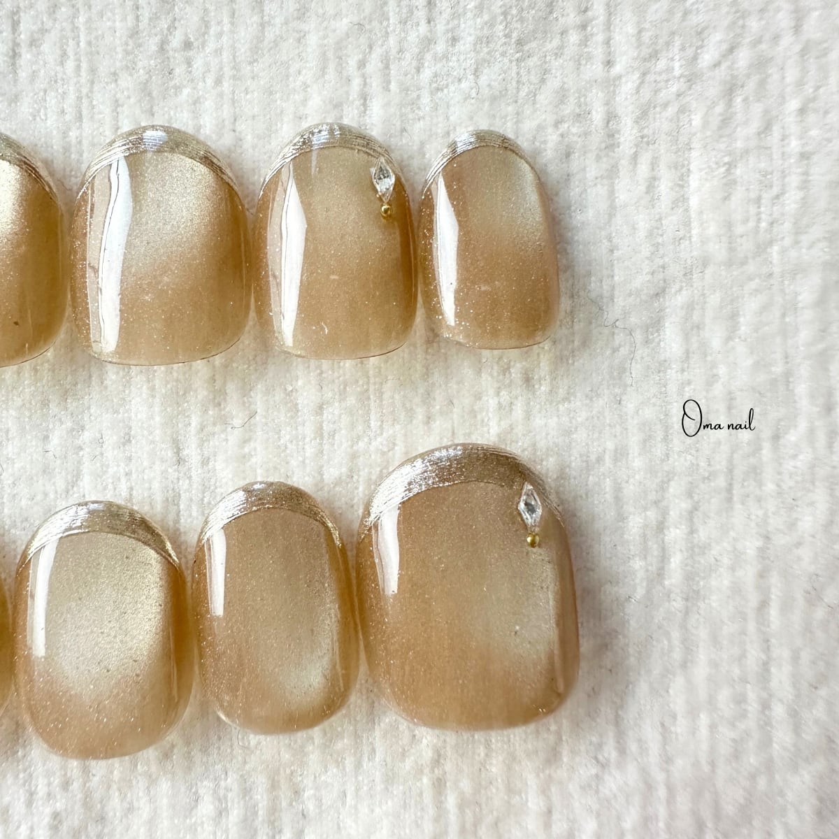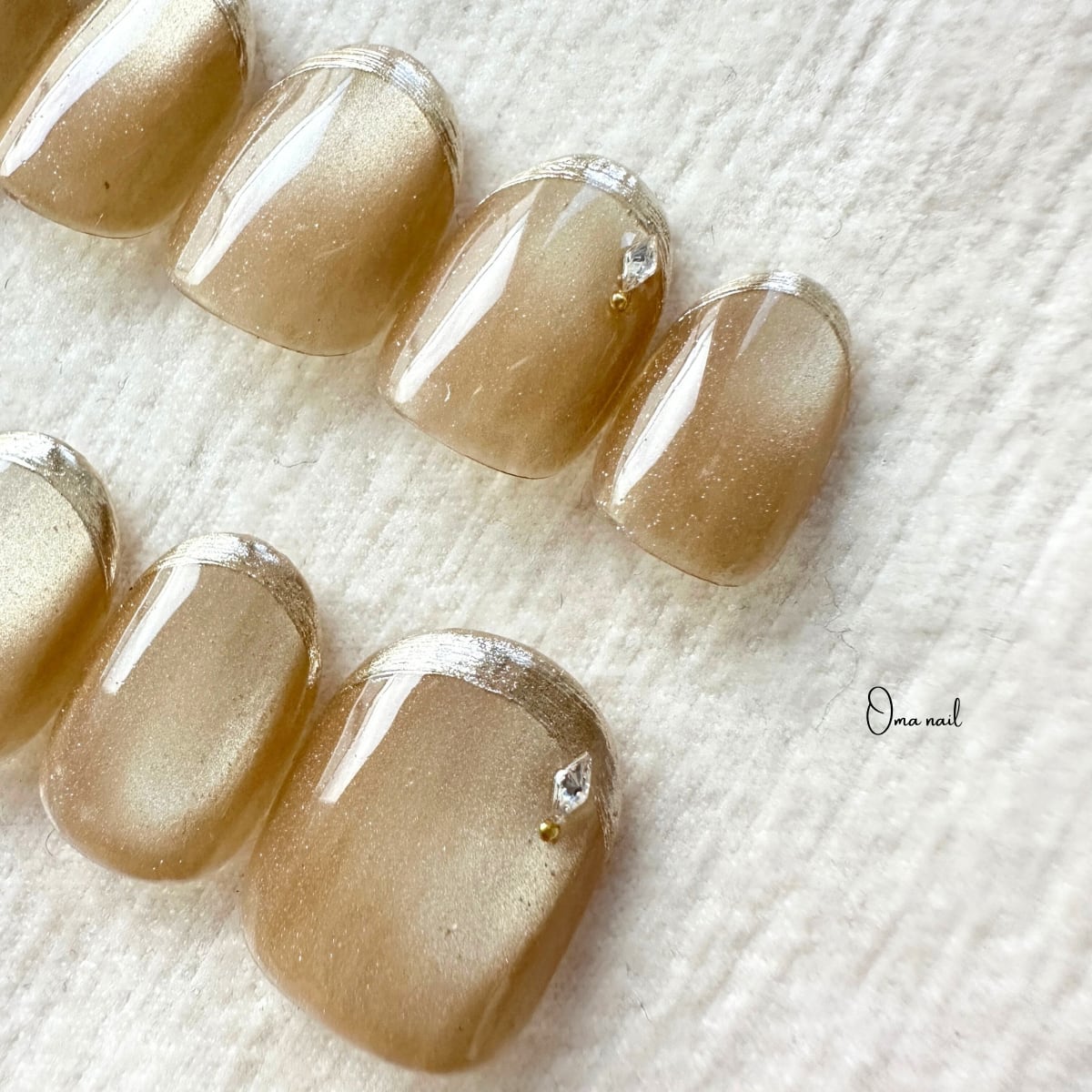 シルキーマグネットジェルを使用したミラーゴールドのフレンチネイル。