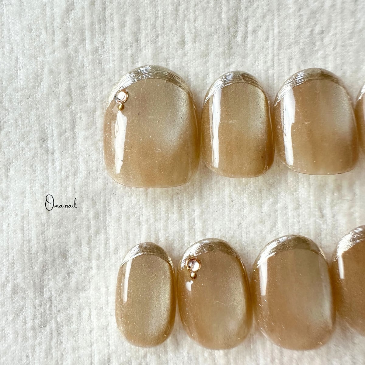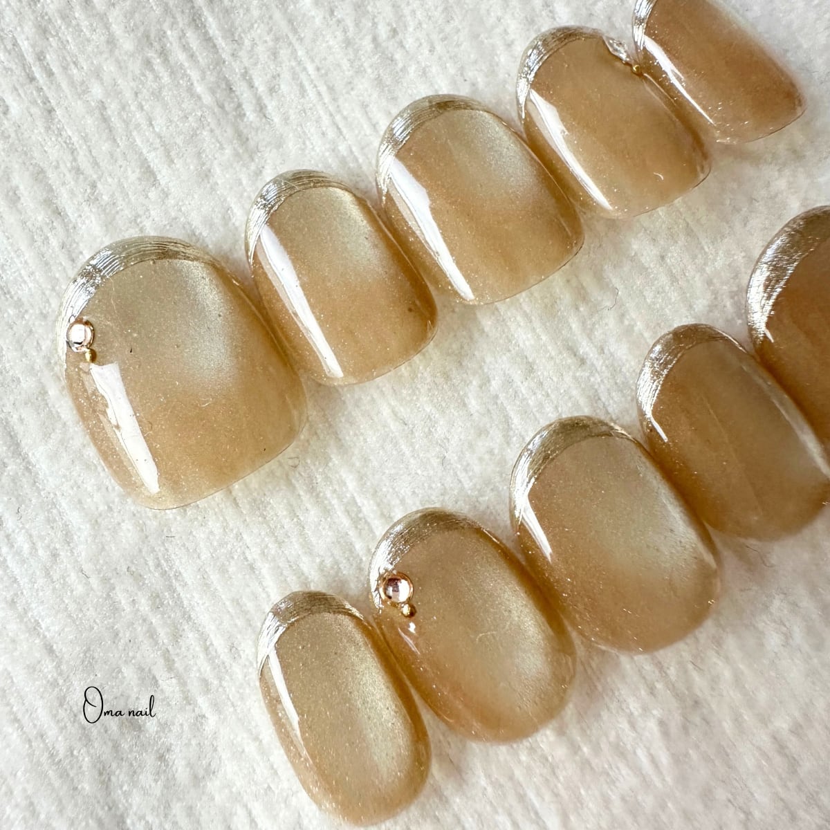 シルキーマグネットジェルを使用したミラーゴールドのフレンチネイル。