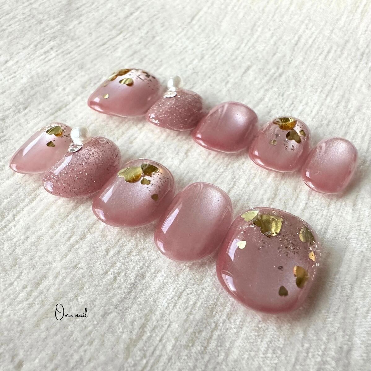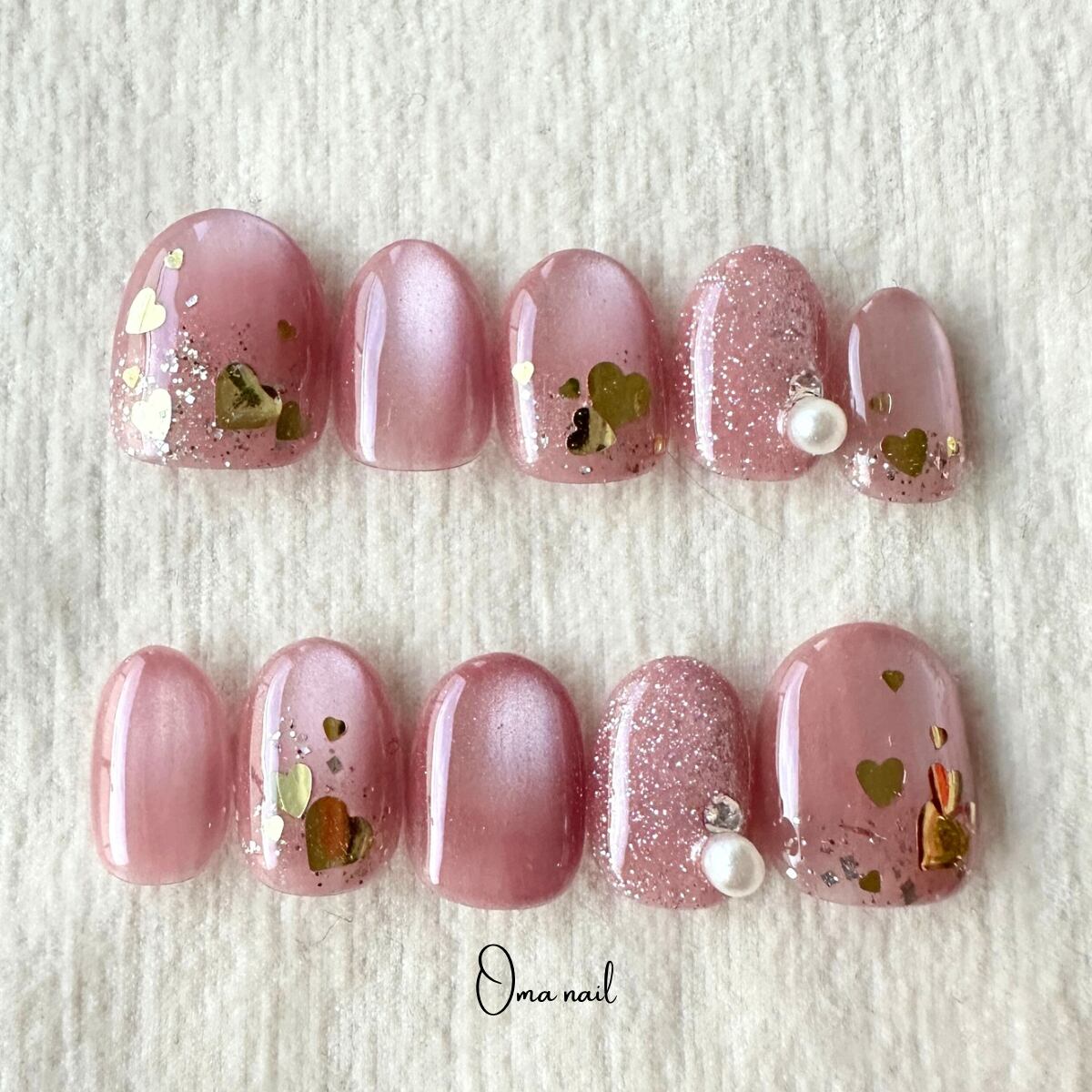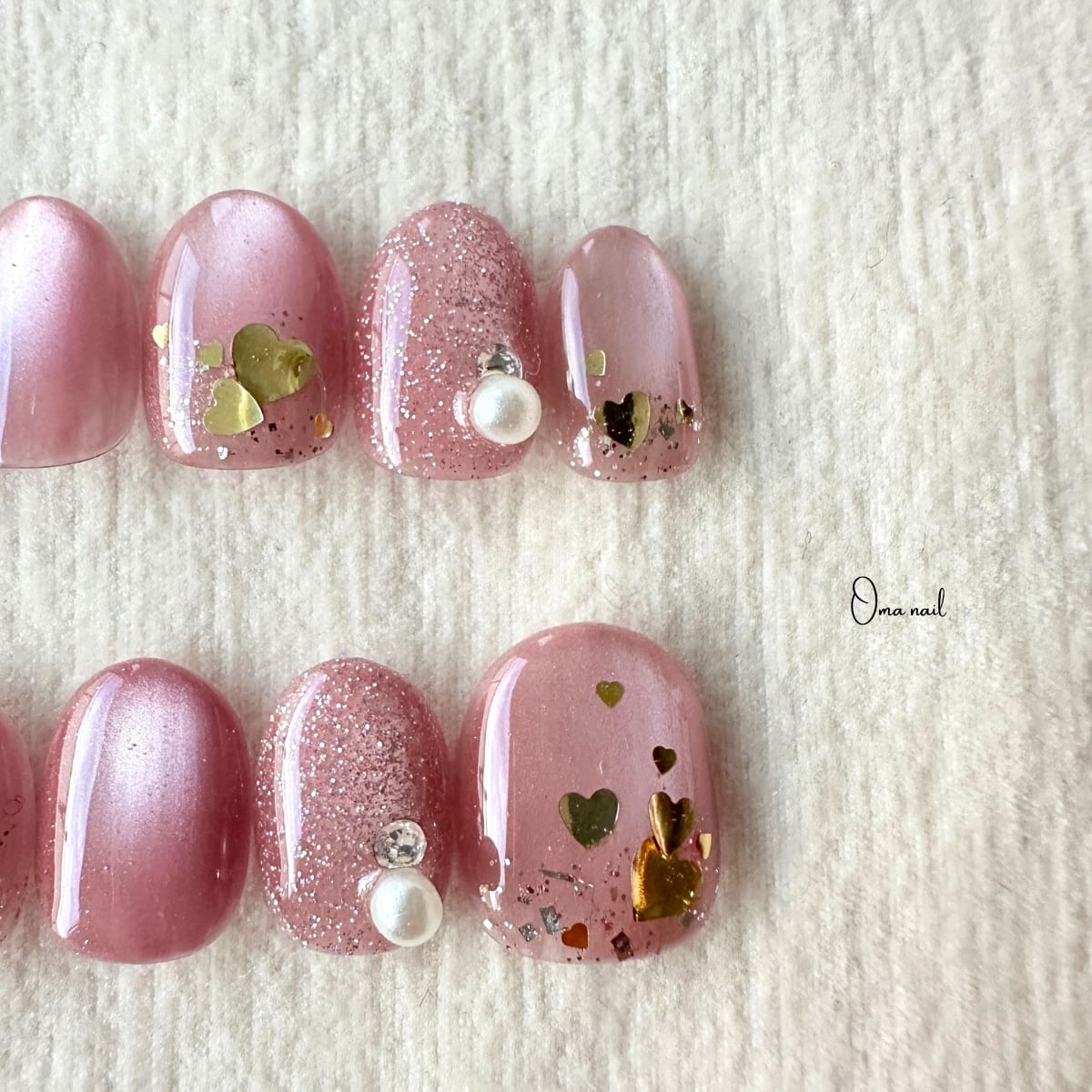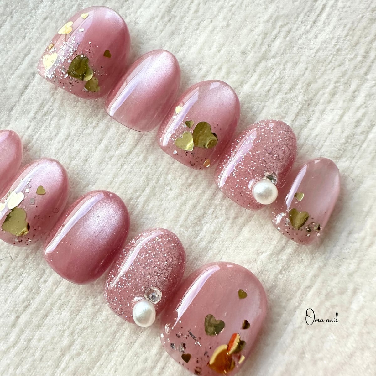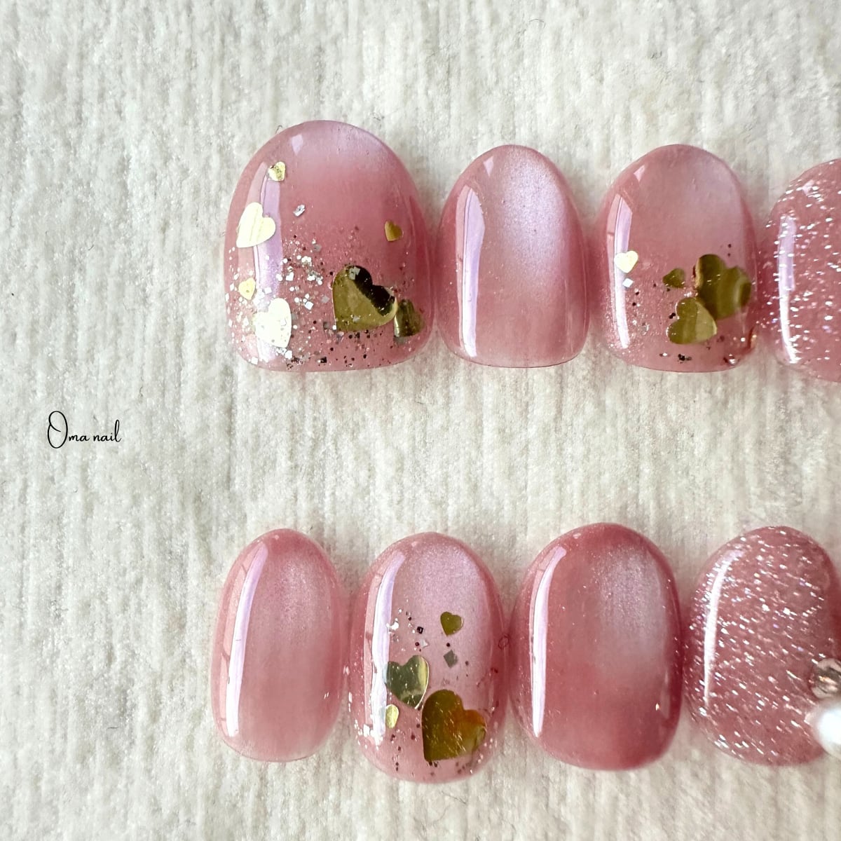 シルキーマグネットジェルを使用したゴールドハートネイル。