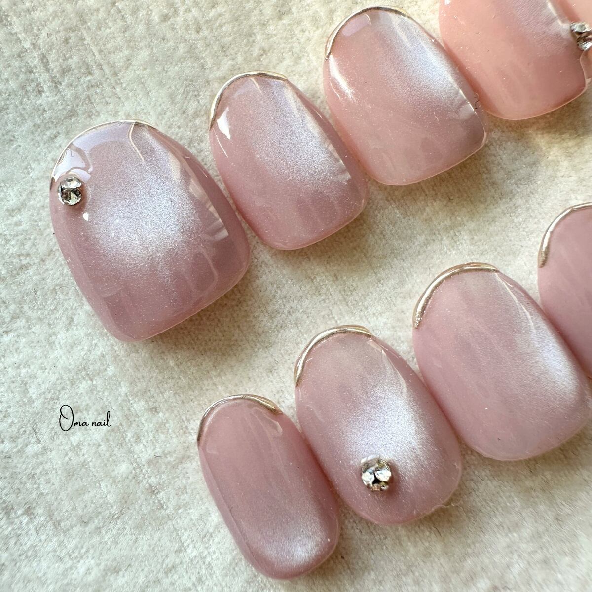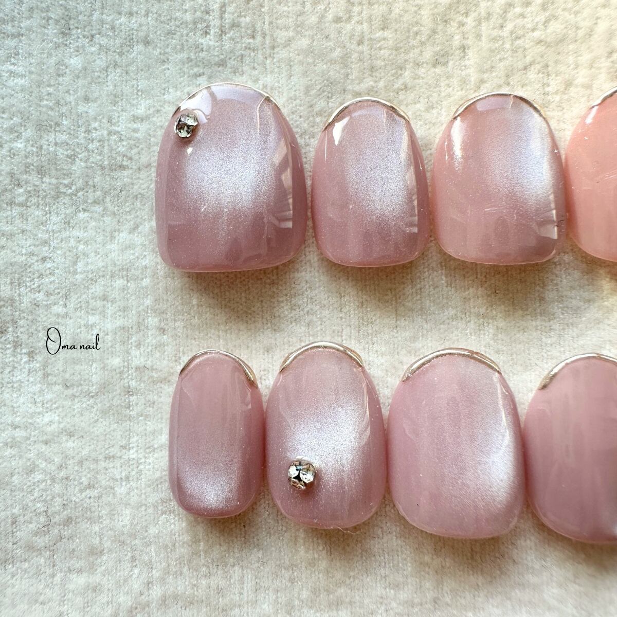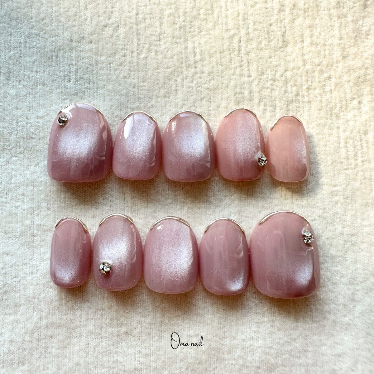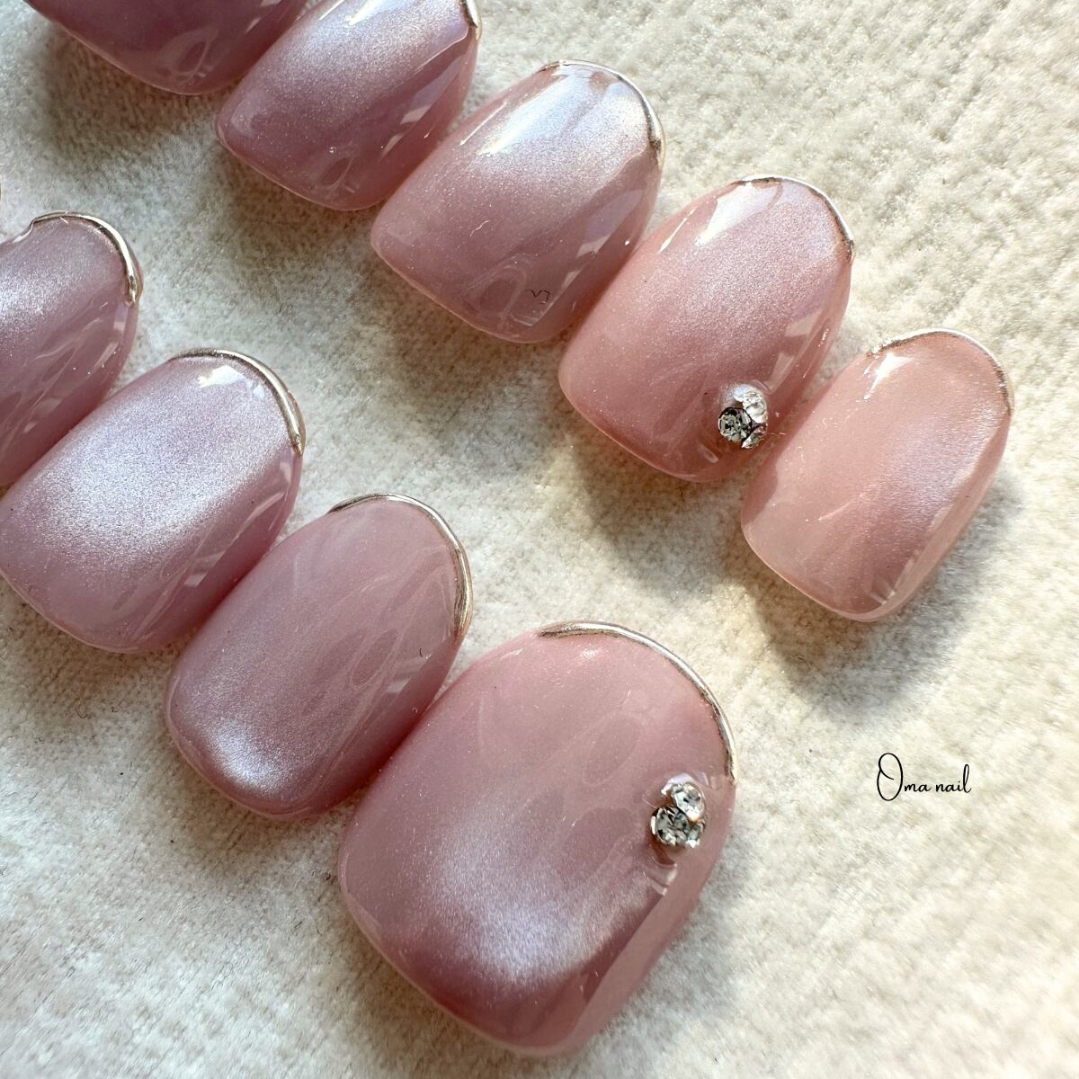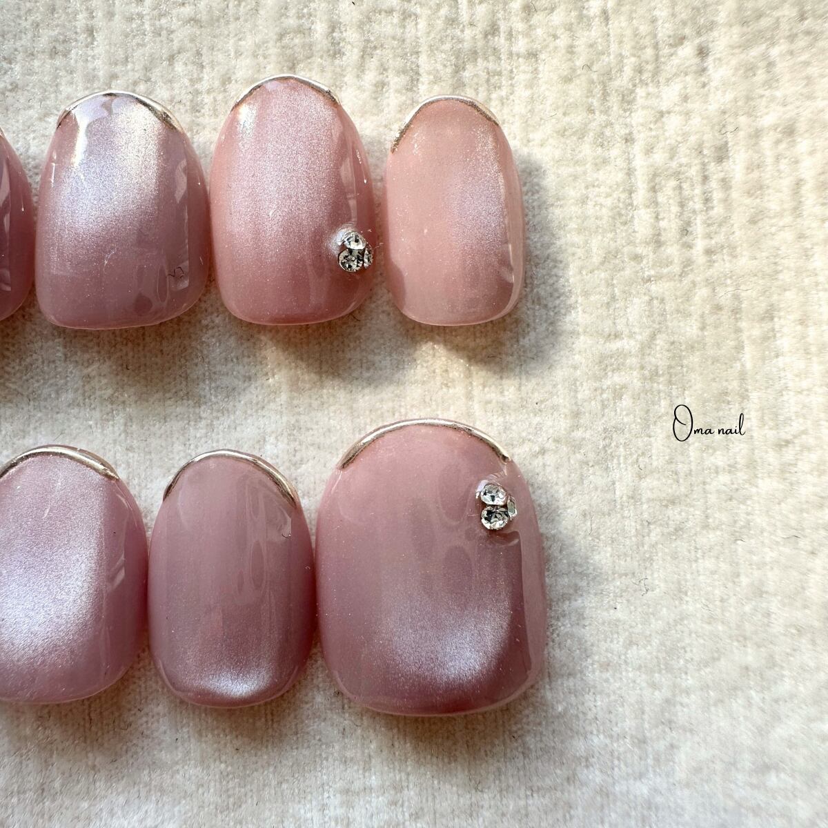 くすみピンクの水光シルキーマグネットジェルを使用した綺麗めデザインのネイルチップです