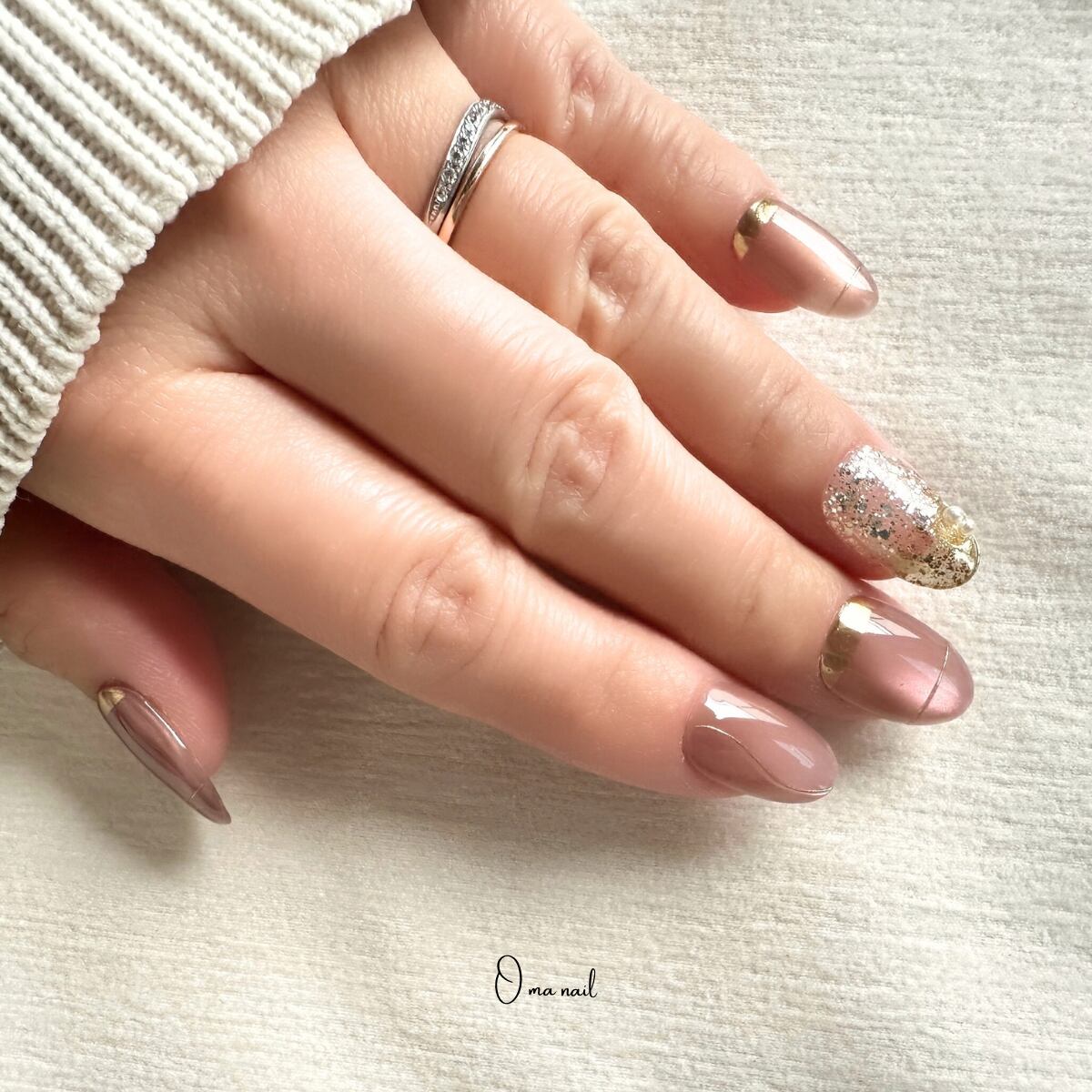 くすみカラーのマグネットネイル
